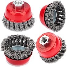Brosse Métallique Nettoyage, 4pcs Brosse à Fils Métalliques M14 Torsadés 75mm / 100mm pour Meuleuse d’angle Brosse Boisseau Dérouillage Corrosion l’enlèvement de Peinture (75mm / 3'')