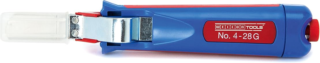 WEICON 50054428 Fil Tools Couteau à dégainer N° 4-28 G/Dénudeur pour câbles Ronds avec Lame Droite, Bleu/Rouge