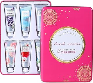 Crème pour les Mains, Body & Earth Coffret Cadeau Femme, 6PCS Lotion pour les Mains Sèches, Hydratant avec du Beurre de Karité, Idée Cadeau pour les Femmes