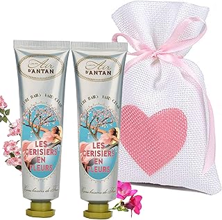 Coffret Creme Main Hydratante - LOT 2x25 ml Fleurs de Cerisiers, Freesia/Un Air d’Antan®/ Parfum de Grasse/Crème Mains Nourrissante/Beurre de Karité & Aloe Vera/Creme Mains/Petit Cadeau Original