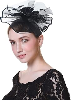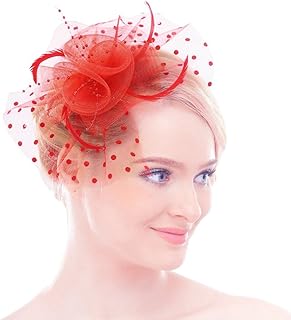 WELROG Dames Sinamay Chapeau fascinant Derby plume maille Cocktail Topper pour les femmes