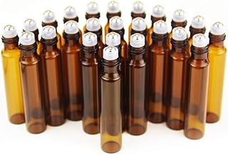 Yizhao Marron Flacon Roll On Vide 10ml, Flacon Roll On en Verre, pour Huile Essentielle, Rechargeable, Aromathérapie, Parfum, Massage,avec [Bille en Acier Inoxydable]-24Pcs