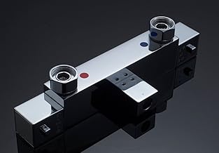 Mitigeur Thermostatique Douche Salle de Bain 2 Sortis Basse Mélangeur Thermostatique en Laiton Chromé avec Bouton de Sécurité pour Salle de Bain