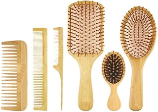 Brosse à cheveux en bambou, Manche en bambou avec poils en bambou Ensemble de brosse à cheveux avec peigne à queue, peigne à dents, peigne à double tête, peigne à coussin pour massage du cuir
