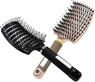 Brosse à Cheveux De Massage CourbéE Brosse à Cheveux En Poils De Sanglier Brosses Efficaces Pour Le Coiffage Brosse à Cheveux DéMêLante Pour Femme Cuir Chevelu Peigne De Massage Noir D'Or 2 PièCes