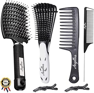 ✅ Brosse à Cheveux Démêlante - Brosse en Poils de Sanglier - Brosse pour Cheveux bouclés épais fins frisés - Peigne à dents larges - Peigne à Queue | Angellus