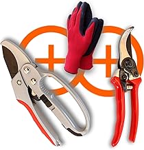 2 Sécateurs de jardin complémentaires ! Kit coffret : 1 sécateur taille de plante et 1 secateur cremaillere à cliquet professionnel pour taille branche plus grosse sans force. Gants jardinage cadeau !