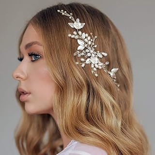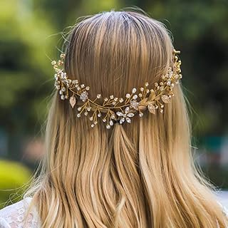 Simsly Fleur de mariée pour cheveux de mariage en forme de vigne argentée ou dorée Accessoires de cheveux de mariage avec perles pour femmes et filles (doré)