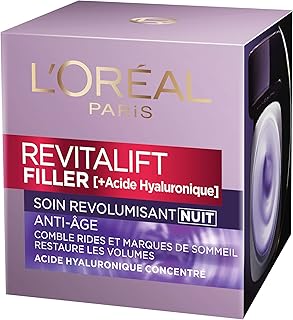 L'Oréal Paris - Revitalift - Filler - Soin Nuit Revolumisant - Anti-rides & Volume - Anti-âge - Concentré en Acide Hyaluronique - 50 mL